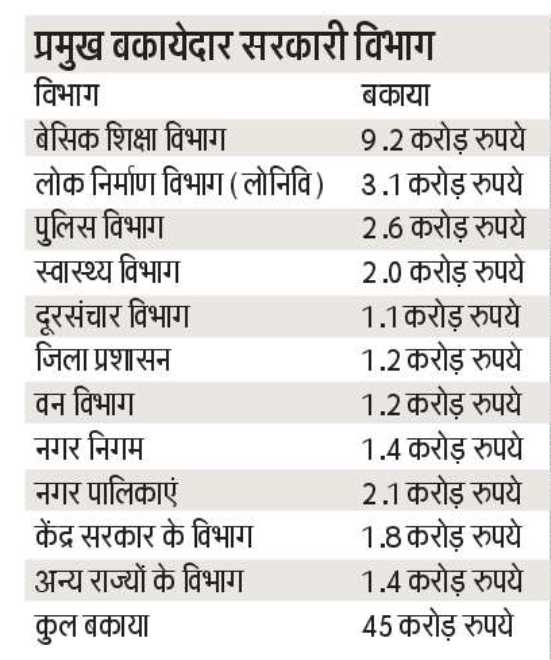 देहरादून। उत्तराखंड में ऊर्जा निगम के बिजली बिलों का सरकारी विभागों पर 45 करोड़ रुपये से अधिक का बकाया वर्षों से लंबित है, लेकिन इसके बावजूद इन विभागों से वसूली को लेकर निगम गंभीर नजर नहीं आ रहा है। इस मुद्दे को लेकर उत्तराखंड पहाड़ी महासभा की महासचिव गीता बिष्ट ने ऊर्जा निगम के प्रबंध निदेशक (एमडी) को पत्र भेजकर तत्काल वसूली की मांग उठाई है।