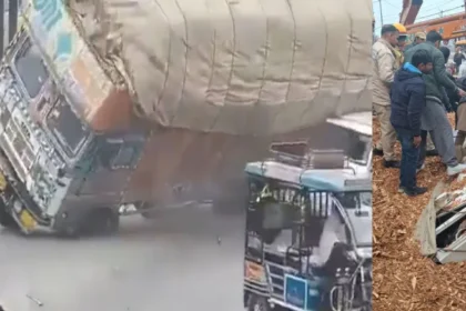 बोलेरो पर पलटा ओवरलोड ट्रक, यूपी में एक्सीडेंट का दिल दहला देने वाला वीडियो वायरल