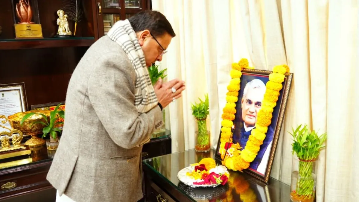 देहरादून : मुख्यमंत्री पुष्कर सिंह ने पूर्व प्रधानमंत्री, भारत रत्न अटल बिहारी वाजपेयी की जयंती पर मुख्यमंत्री कैंप कार्यालय में उनके चित्र पर श्रद्धासुमन अर्पित करते हुए उनको नमन किया।